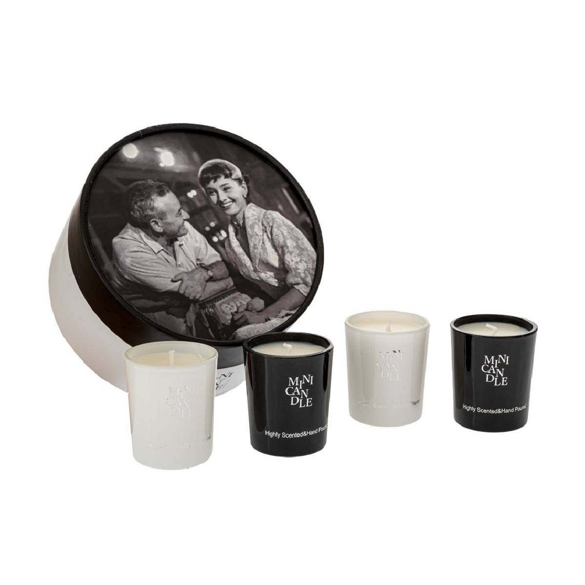 - Vintage Αισθητική: Η πολυτελής, στρογγυλή κασετίνα με την εμβληματική ασπρόμαυρη φωτογραφία θυμίζει παλιό Χόλιγουντ, καθιστώντας το σετ ένα πανέμορφο διακοσμητικό αντικείμενο ακόμα και πριν ανάψετε τα κεριά.