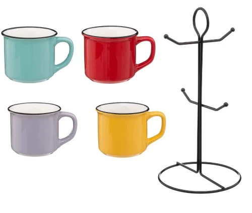 - Το σετ περιλαμβάνει μεταλλική βάση και 4 κούπες από πορσελάνη New Bone China