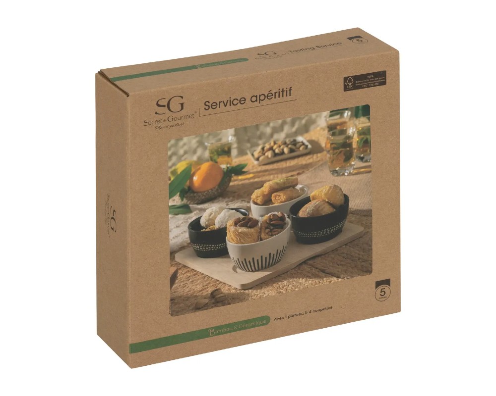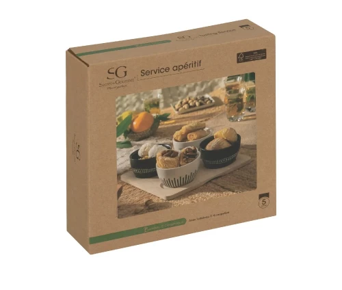- Σετ 4 μπολάκια stoneware για ντιπ σε βάση bamboo Secret De Gourmet 207103