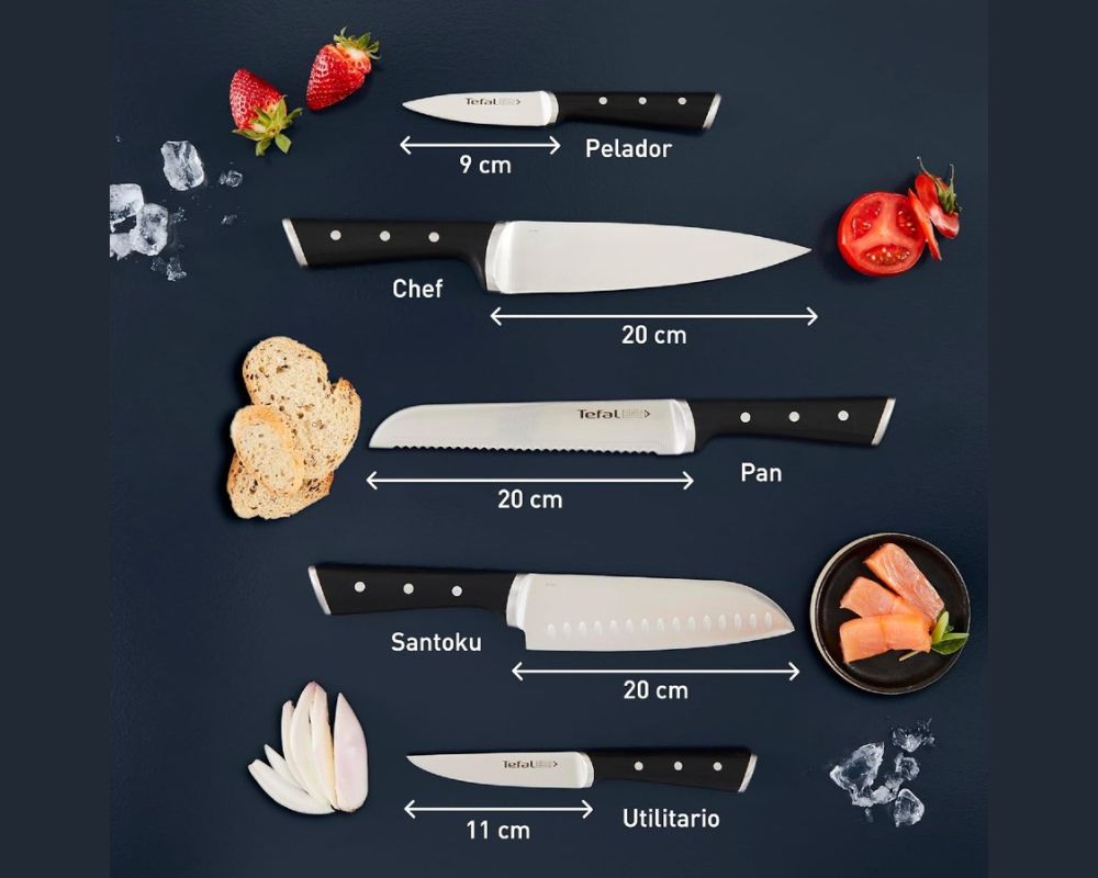 Αναβαθμίστε την καθημερινή προετοιμασία φαγητού με το σετ 5 ανοξείδωτων μαχαιριών Tefal Ice Force K232S574. Η σειρά Ice Force είναι σχεδιασμένη για υψηλή απόδοση, μεγάλη αντοχή και απόλυτη ακρίβεια σε κάθε κοπή, χάρη στη διαδικασία Ice Force Technology, όπου οι λεπίδες ψύχονται σε εξαιρετικά χαμηλές θερμοκρασίες για ακόμη μεγαλύτερη σκληρότητα και ανθεκτικότητα στη φθορά.