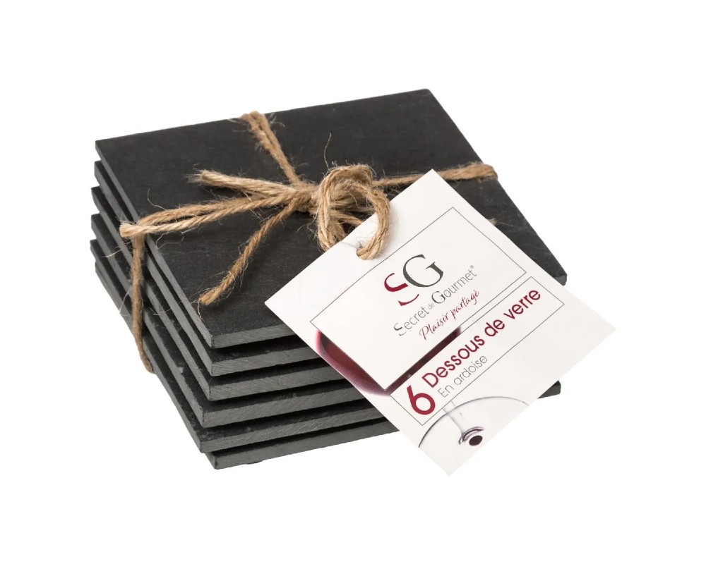 Το Secret De Gourmet 150079 είναι ένα κομψό και λειτουργικό σετ 6 μαύρων σουβέρ από φυσικό γρανίτη (slate), με διαστάσεις 10 × 10 × 0,8 cm. Καθένα διαθέτει μικρές προεξοχές στην κάτω πλευρά για να αποφεύγονται γρατζουνιές στις επιφάνειες γύρω τους, προσφέροντας αξιόπιστη προστασία . Το minimalist design σε μαύρο χρώμα το κάνει κατάλληλο για ποτήρια και κούπες, ενώ χάρις στο λιτό και premium ύφος του, λειτουργεί άψογα και ως δώρο.