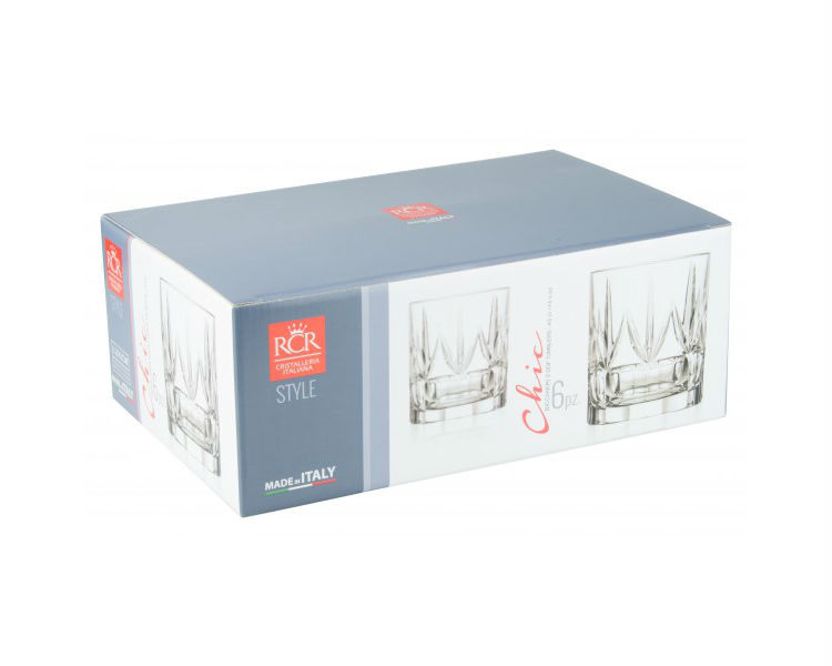- Τα ποτήρια chic της RCR κατασκευάζονται με το υλικό Luxion, κρύσταλλο εξαιρετικής αντοχής χωρίς προσθήκη μολύβδου