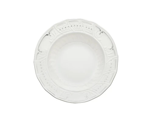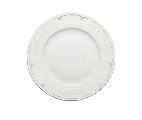 Φέρτε την αίγλη της κλασικής Ελλάδας στο σπίτι σας με το σερβίτσιο Karyatis Platino. Ένα πλήρες σετ 72 τεμαχίων από ανάγλυφη ευρωπαϊκή πορσελάνη, διακοσμημένο στο χέρι με λαμπερές λεπτομέρειες πλατίνας.