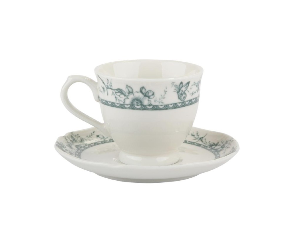 Το σχέδιό του, εμπνευσμένο από την ομορφιά ενός ήσυχου κήπου, διακοσμεί με διακριτική χάρη τόσο το φλυτζάνι όσο και το πιατάκι του. Κάθε γουλιά γίνεται μια μικρή απόδραση, μια στιγμή για να πάρετε μια βαθιά ανάσα και να απολαύσετε την ηρεμία. Η ποιοτική πορσελάνη και το άνετο χερούλι ολοκληρώνουν μια εμπειρία απόλυτης χαλάρωσης.