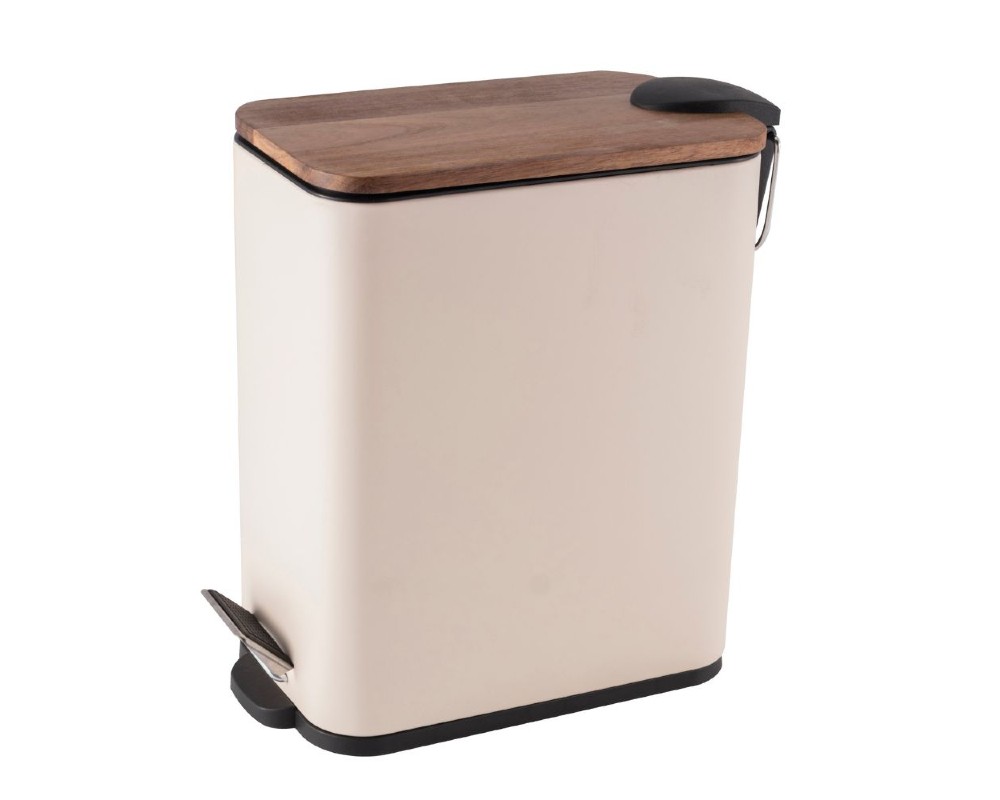 Ο κάδος είναι κατασκευασμένος από ανθεκτικό μέταλλο, ενώ το καπάκι του από φυσικό bamboo προσθέτει μια ζεστή, minimal πινελιά. Ο μηχανισμός soft-close εξασφαλίζει αθόρυβο και ομαλό κλείσιμο, αποφεύγοντας χτυπήματα και φθορές. Το πιγκάλ διαθέτει σταθερή βάση και ταιριάζει απόλυτα με τον κάδο, ολοκληρώνοντας το σετ.