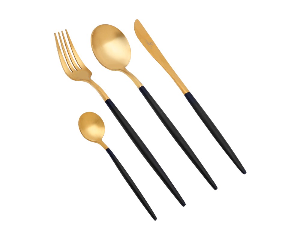 Αναδείξτε κάθε γεύμα σε μια ξεχωριστή εμπειρία αισθητικής με το εντυπωσιακό σετ μαχαιροπίρουνων 24 τεμαχίων από τη συλλογή Senso της Cryspo Trio. Ο μοντέρνος σχεδιασμός του συνδυάζει την κομψότητα της λεπτής μαύρης λαβής με τη διακριτική πολυτέλεια του ματ χρυσού φινιρίσματος, δημιουργώντας ένα αποτέλεσμα υψηλής αισθητικής που θα εντυπωσιάσει τους καλεσμένους σας.