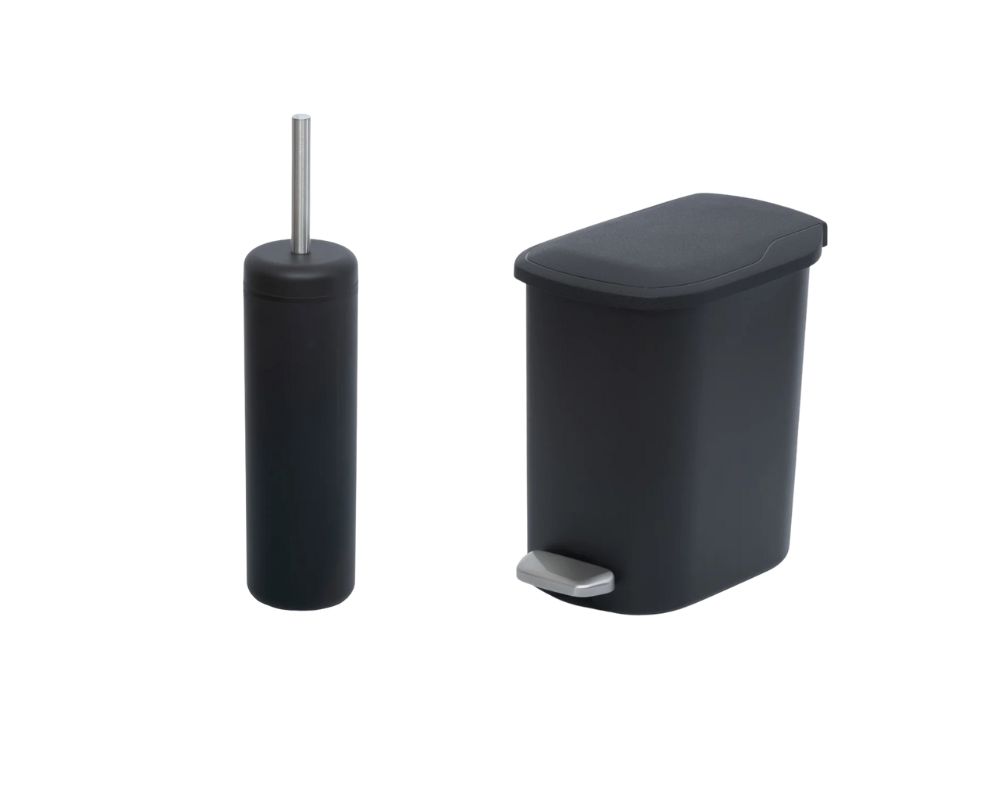 Το σετ μπάνιου Rainbow σε μαύρο χρώμα αποτελεί μια ολοκληρωμένη και καλαίσθητη λύση για κάθε μοντέρνο μπάνιο. Συνδυάζει τον κάδο απορριμμάτων 6 λίτρων με πεντάλ και λειτουργία soft close με το πιγκάλ μπάνιου, που διαθέτει ανθεκτικό πλαστικό σώμα και μεταλλική λαβή.