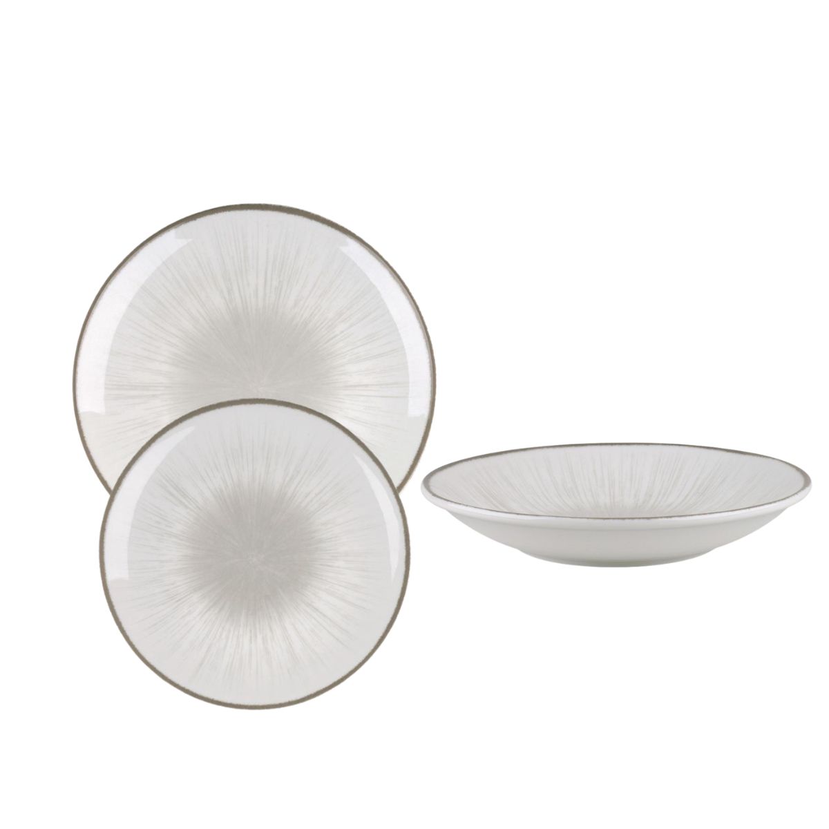 Το σερβίτσιο είναι κατασκευασμένο από ανθεκτική πορσελάνη εξαιρετικής ποιότητας και μαγνητίζει τα βλέμματα χάρη στον εκλεπτυσμένο σχεδιασμό του. Το χαρακτηριστικό ακτινωτό μοτίβο σε κομψές, γκρι "water lilly" αποχρώσεις, σε συνδυασμό με το διακριτικό σκούρο περίγραμμα, προσδίδει μια μοντέρνα, μίνιμαλ και γαλήνια αισθητική σε κάθε σας γεύμα.
