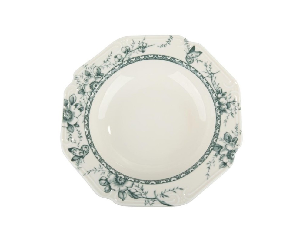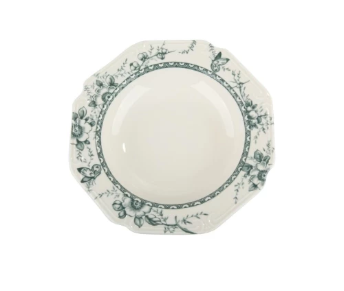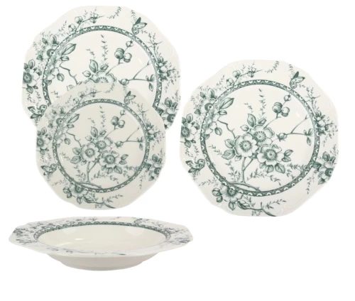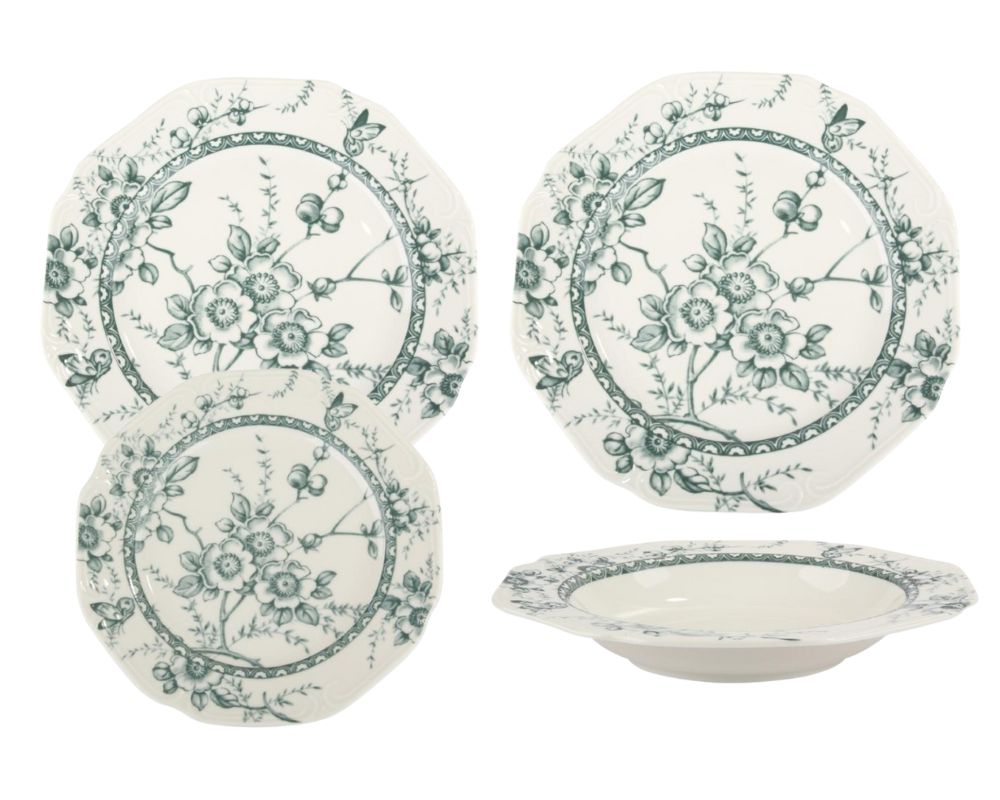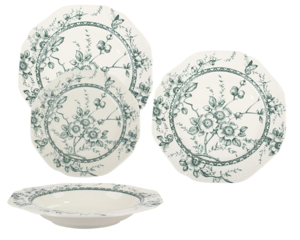 Ιδανική πρόταση για δώρο γάμου, για ένα νέο ξεκίνημα ή για όσους επιθυμούν να ανανεώσουν το σπίτι τους με ένα στυλ που αποπνέει ηρεμία και καλό γούστο. Κάθε κομμάτι είναι φτιαγμένο από την ίδια υψηλής ποιότητας πορσελάνη, διακοσμημένο με το ντελικάτο φλοράλ μοτίβο σε γαλήνιες αποχρώσεις του πράσινου.