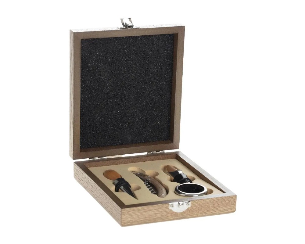 - Σετ αξεσουάρ κρασιού 4 τμχ σε ξύλινη θήκη Secret De Gourmet 160753