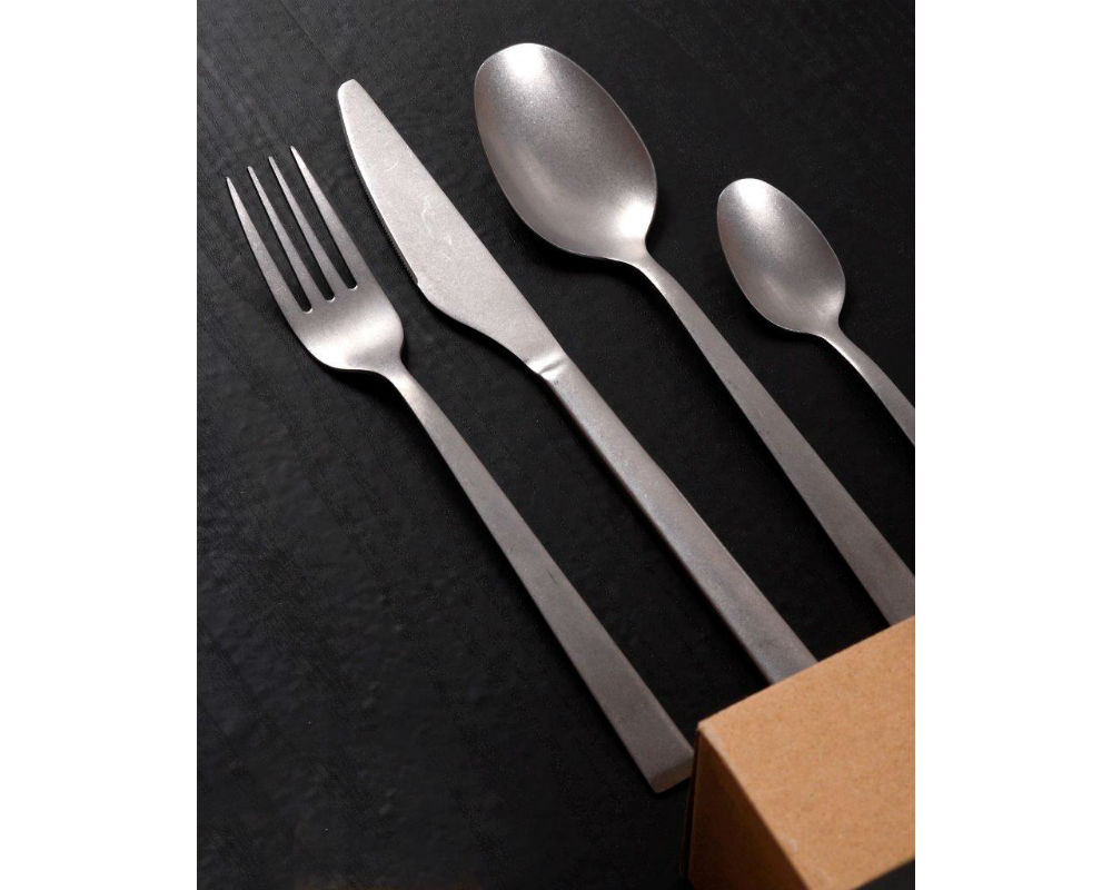 - Το σετ αποτελείται από 6 πιρούνια φαγητού, 6 κουτάλια φαγητού, 6 μαχαίρια φαγητού και 6 κουταλάκια γλυκού