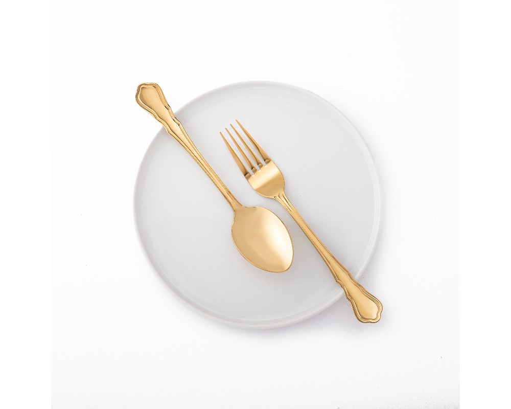 - Το σετ περιλαμβάνει: 6 πιρούνια φαγητού (210 mm), 6 κουτάλια φαγητού (205 mm), 6 μαχαίρια φαγητού (240 mm) και 6 κουτάλια γλυκού (148 mm)