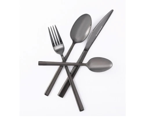 - Το σετ περιλαμβάνει: 6 πιρούνια φαγητού (202 mm), 6 κουτάλια φαγητού (206 mm), 6 μαχαίρια φαγητού (239 mm) και 6 κουτάλια γλυκού (167 mm)