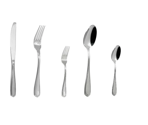 - Το σετ περιλαμβάνει: 6 πιρούνια φαγητού, 6 κουτάλια φαγητού, 6 μαχαίρια φαγητού, 6 πιρούνια γλυκού και έξι κουτάλια γλυκού