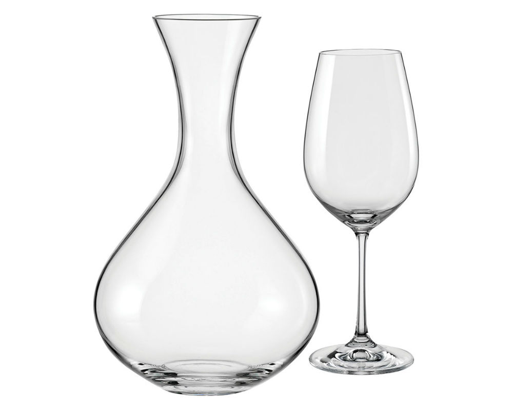 - Το σετ περιλαμβάνει: καράφα γευσιγνωσίας (1500 ml) και 6 ποτήρια κρασιού (450 ml)