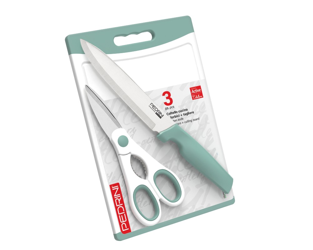 Το σετ κοπής κουζίνας Pedrini 03GD323 είναι μια πρακτική και καλαίσθητη λύση για κάθε σπίτι. Περιλαμβάνει: