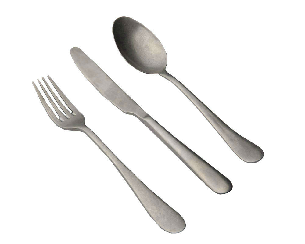 - Με ειδική επεξεργασία παλαίωσης. Όλα τα πλεονεκτήματα του ανοξείδωτου (στιβαρότητα, αντοχή διάρκεια) σε ένα μαχαιροπίρουνο που αποκτά ιδιαίτερη ταυτότητα και υφή