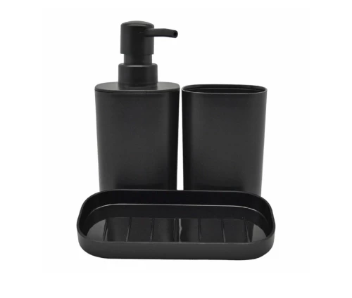 - Σετ μπάνιου 3 τεμαχίων το οποίο αποτελείται από dispenser για υγρό σαπούνι, ποτηροθήκη και σαπουνοθήκη από πλαστικό υψηλής ποιότητας σε μαύρο χρώμα