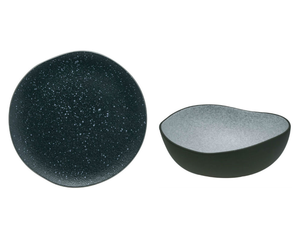- mix & match σύνθεση πρόταση μας: ρηχό - φρούτου σε μαύρο - σκούρο γκρι & βαθύ - σαλατιέρα - πιατέλα μαύρο εξωτερικά και χρώμα πάγου με γκρι στίγματα εσωτερικά