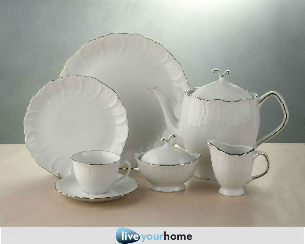 - Το σετ περιλαμβάνει: 24 πιάτα ρηχά, 12 πιάτα βαθιά, 24 πιάτα φρούτου, 4 πιατέλες, 2 σαλατιέρες, 4 ραβιέρες, σουπιέρα και σαλτσιέρα