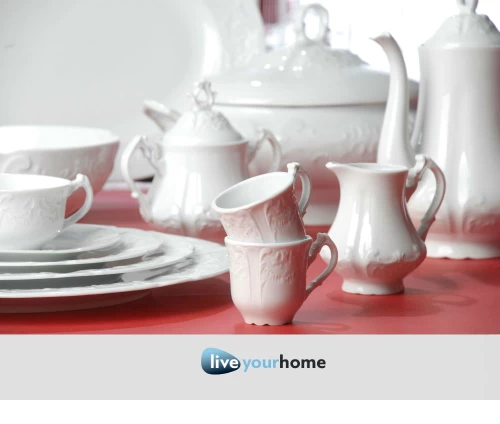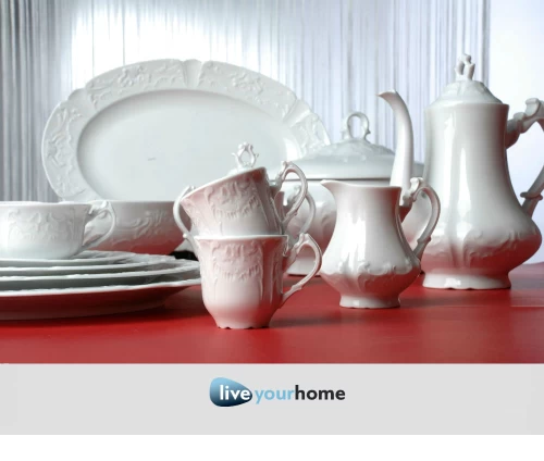- Λευκή ανάγλυφη πορσελάνη, σε κλασσικό μοτίβο