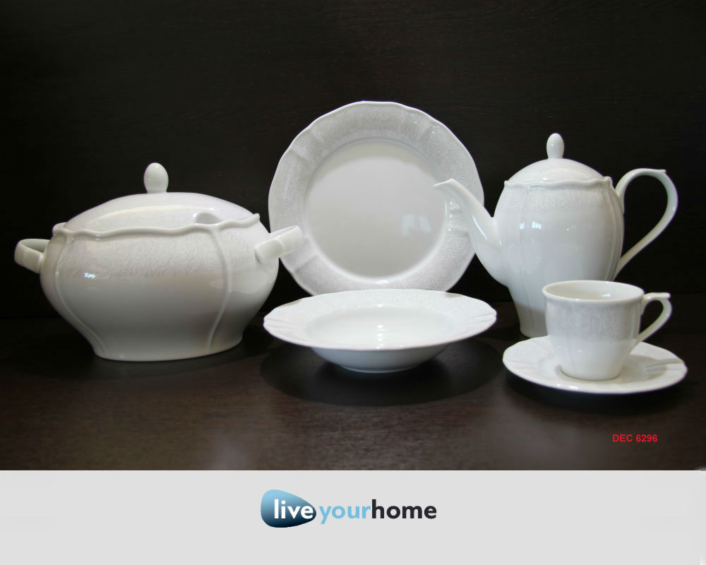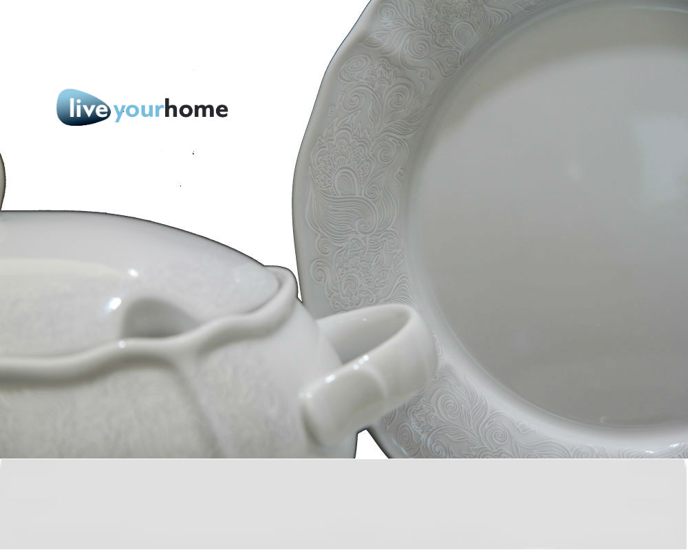 - Πλήρες σετ 24 ατόμων περιλαμβάνει: 24 πιάτα φαγητού, 12 πιάτα βαθιά, 24 πιάτα φρούτου, 4 πιατέλες, 2 σαλατιέρες, 4 ραβιέρες, σουπιέρα και σαλτσιέρα