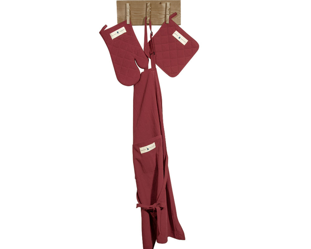 - Το σετ αποτελείται από μία ποδιά 65 x 80 εκ, ένα γάντι 17 x 28 εκ και μία πιάστρα 20 x 20 εκ.