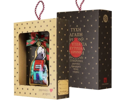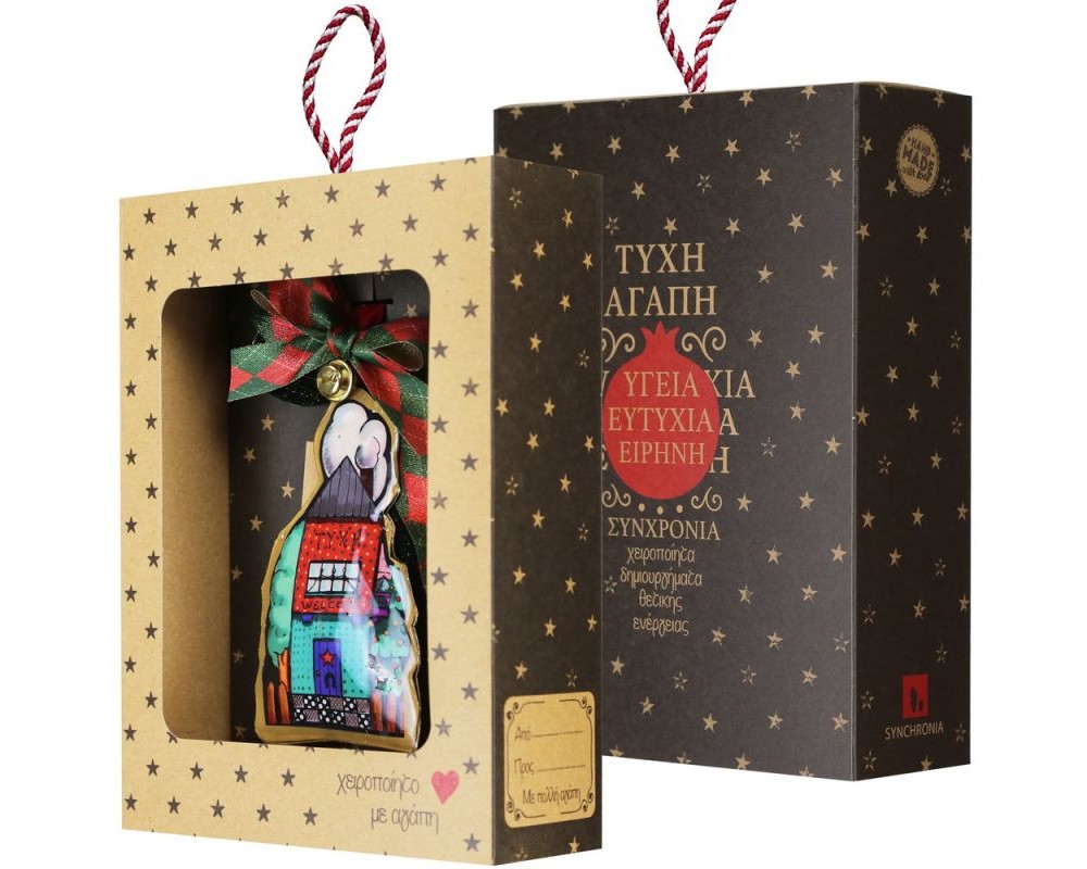Χειροποίητο γούρι με μεταλλικό σπιτάκι, βαμμένο και στις δύο πλευρές σε γιορτινές αποχρώσεις. Διακοσμημένο με καρό κορδέλα και μεταλλικό κουδουνάκι. Ιδανικό ως χριστουγεννιάτικο δώρο για τους αγαπημένους σας.