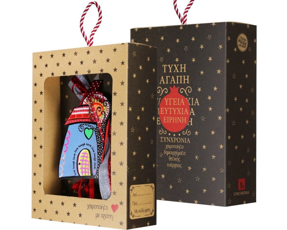 Συνοδεύεται από όμορφες κορδέλες και κορδόνια και έρχεται σε έτοιμη συσκευασία δώρου από οικολογικό χαρτί, η οποία κρύβει και έκπληξη στο πίσω μέρος.