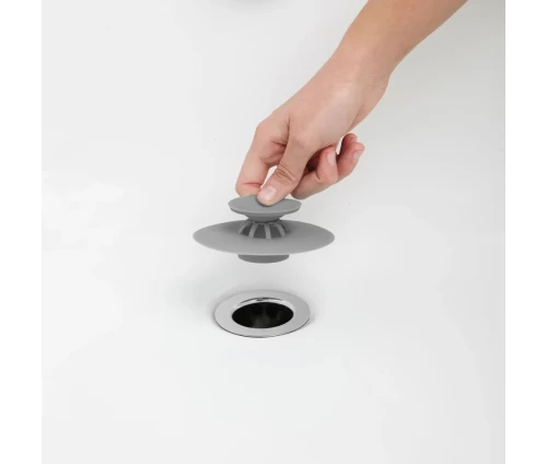 - Αποχαιρετήστε τις βουλωμένες αποχετεύσεις με αυτό το διπλής χρήσης Drain Stop & Hair Catcher: Πατήστε το κεντρικό κουμπί του Flex για να επιτρέψετε τη ροή του νερού και χρησιμοποιήστε το ως hair cutcher, σπρώξτε τις αναποδογυρισμένες άκρες για να κλείσετε τη βαλβίδα και χρησιμοποιήστε το ως πώμα αποστράγγισης