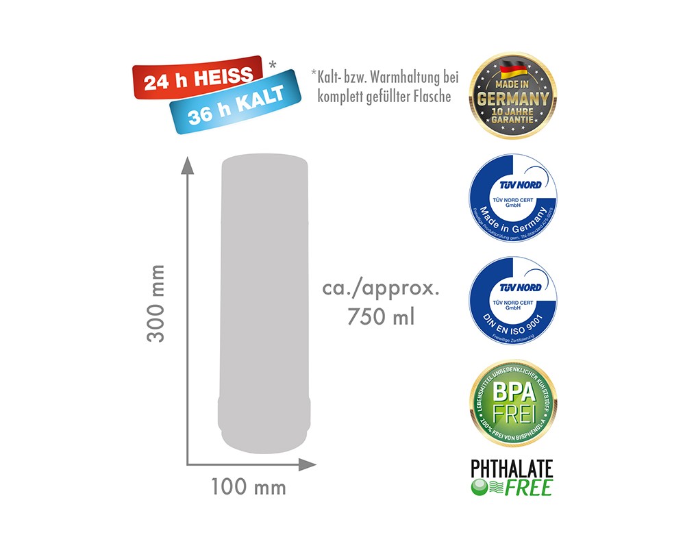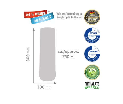 - Διατηρεί την θερμοκρασία 20 ώρες στο ζεστό και 36 ώρες στο κρύο! (οι μετρήσεις γίνονται με γεμάτο θερμός)