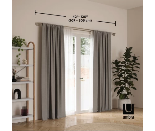 - Ρυθμιζόμενο και Ευέλικτο: Με ρυθμιζόμενο μήκος από 107 έως 305 cm (42-120 ίντσες), προσαρμόζεται εύκολα σε διάφορα μεγέθη παραθύρων, ενώ η διάμετρος 1.9 cm (3/4 ίντσας) εξασφαλίζει στιβαρότητα.