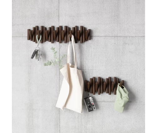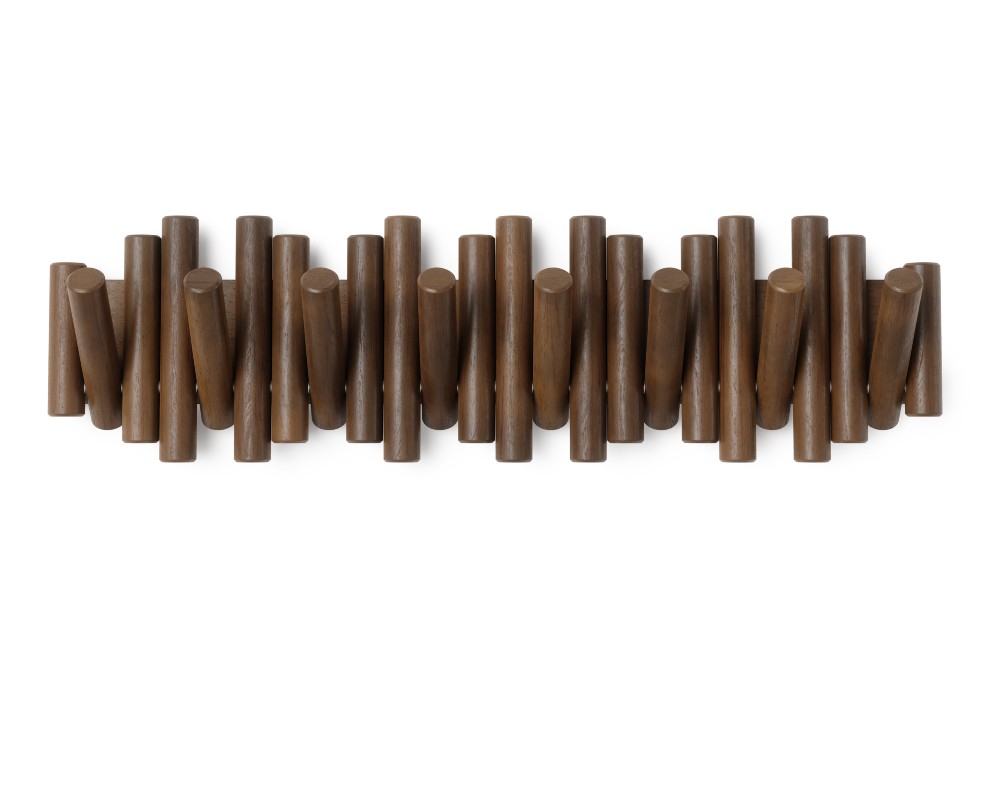 Εμπνευσμένη από τις καθαρές γραμμές της φύσης, η Picket μοιάζει με μια μοντέρνα ξύλινη γλυπτική εγκατάσταση στον τοίχο σας. Οι οκτώ λοξότμητοι πύροι από μασίφ ξύλο δημιουργούν ένα εντυπωσιακό οπτικό αποτέλεσμα. Με μια απλή κίνηση, αυτοί οι πύροι μεταμορφώνονται σε στιβαρούς, αναδιπλούμενους γάντζους, προσφέροντας άμεσο χώρο για να κρεμάσετε παλτό, τσάντες, κασκόλ και ό,τι άλλο χρειάζεστε.