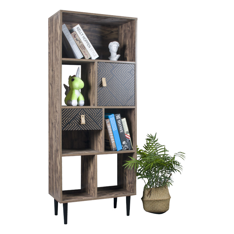 - ΒΙΒΛΙΟΘΗΚΗ Home ΜΑΥΡΟ GREY OAK Fylliana 271-00-026