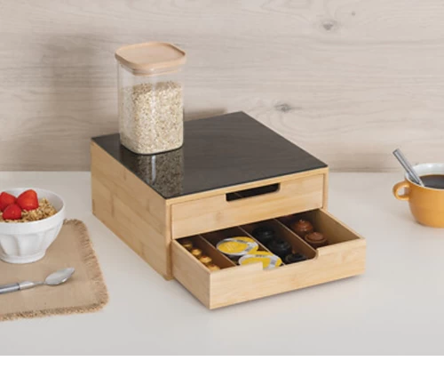 - Βάση μηχανής με 2 συρτάρια για κάψουλες bamboo 5Five 190082