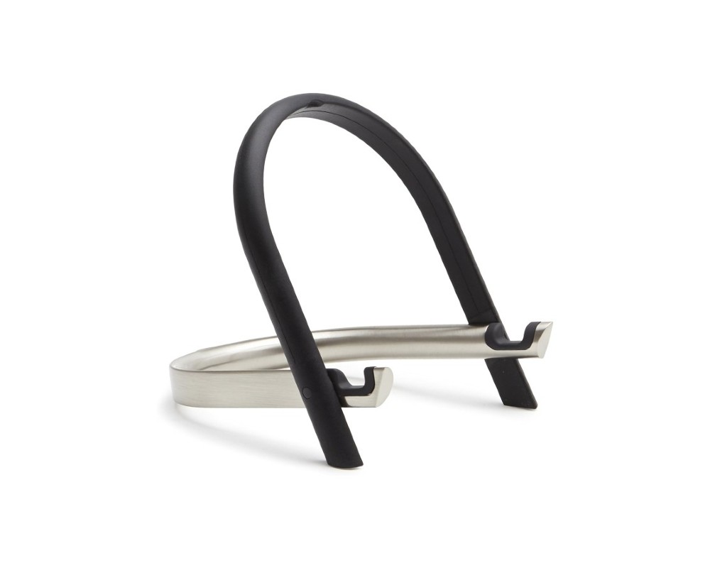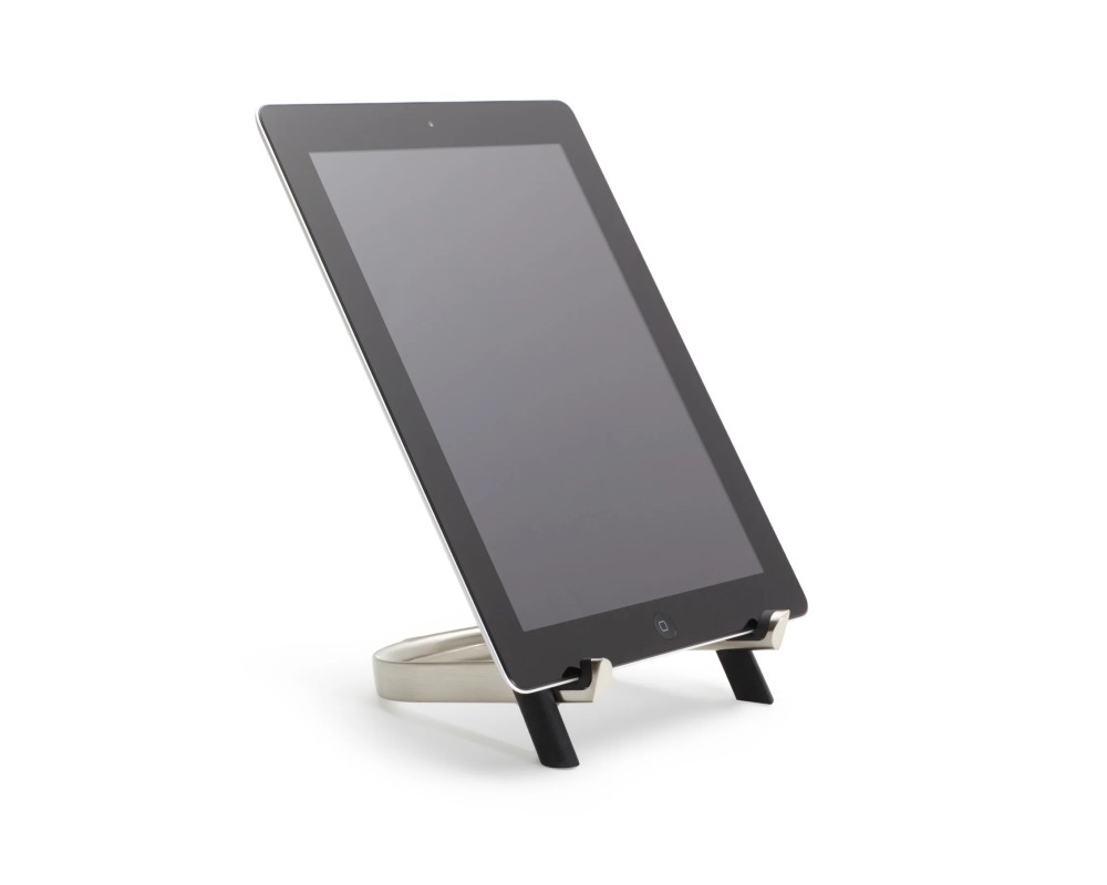 - Κομψή και πτυσσόμενη: Αυτή η θήκη για ταμπλέτες σε σχήμα U είναι κατασκευασμένη από χυτό ψευδάργυρο και σιλικόνη σε νικέλιο/μαύρο και διπλώνει μαζί για εύκολη αποθήκευση όταν δεν χρησιμοποιείται