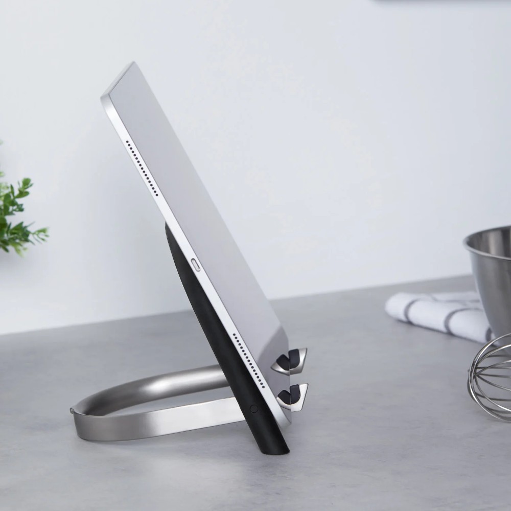 - Λειτουργεί με συσκευές πολλαπλών μεγεθών, επομένως θα λειτουργήσει για όλους τους μάγειρες της οικογένειάς σας! Αυτό το καβαλέτο tablet/τηλεφώνου είναι συμπαγές και πτυσσόμενο, επομένως δεν χρειάζεται να ανησυχείτε μήπως πιάσει χώρο στον πάγκο σας ή ότι είναι δύσκολο να το αποθηκεύσετε, αυτό το αξεσουάρ σε σχήμα U διπλώνει ώστε να μπορεί εύκολα να τοποθετηθεί σε ένα συρτάρι ή ντουλάπι.