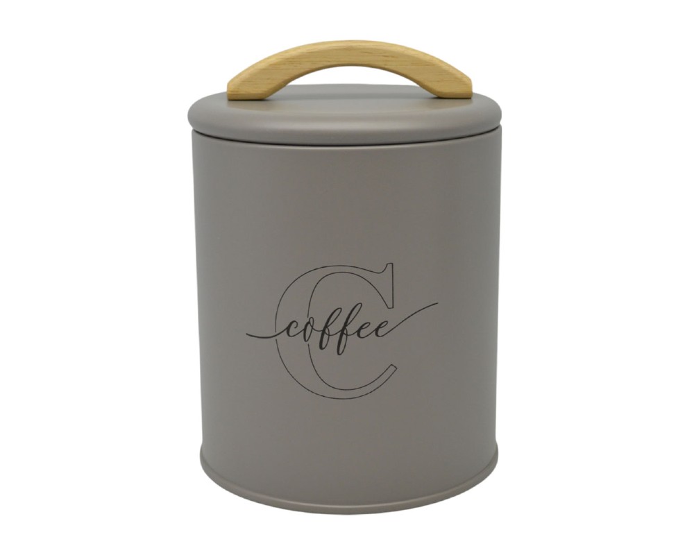 Διαθέτει ματ φινίρισμα σε taupe απόχρωση, ξύλινη λαβή στο καπάκι και κομψή επιγραφή “Coffee” στο μπροστινό μέρος, προσδίδοντας φυσικό και σύγχρονο στυλ στον πάγκο της κουζίνας.