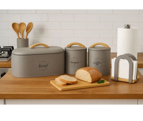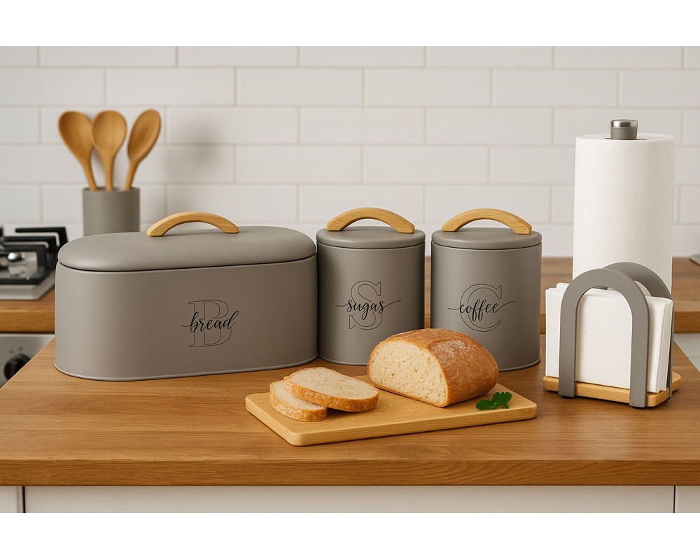 Συνδυάστε το με τα αντίστοιχα βάζα Coffee και τη ψωμιέρα Bread της σειράς Ankor Taupe Line, για μια ολοκληρωμένη και κομψή πρόταση αποθήκευσης στην κουζίνα σας.