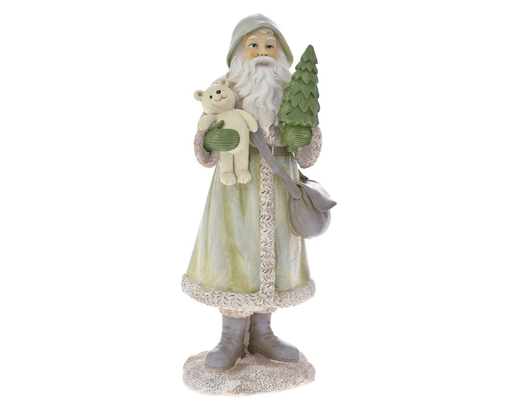 Προσθέστε ζεστασιά και νοσταλγική γοητεία στη χριστουγεννιάτικη διακόσμησή σας με αυτή τη μοναδική φιγούρα Άι Βασίλη σε απαλές αποχρώσεις. Κατασκευασμένη από ανθεκτικό πολυρεζίν, απεικονίζει τον Άγιο Βασίλη να κρατά ένα γλυκό αρκουδάκι και ένα δεντράκι, έτοιμος να μοιράσει χαρά και δώρα.