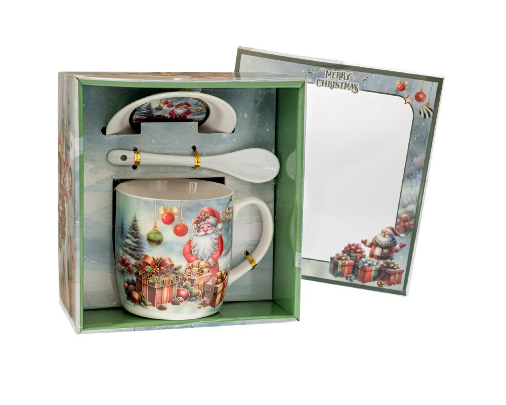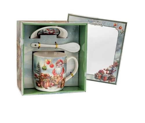 Φέρτε τη μαγεία των Χριστουγέννων στο καθημερινό σας ρόφημα με αυτή τη γιορτινή κεραμική κούπα σε σετ με κουτάλι και πιατάκι. Διακοσμημένη με τον Άγιο Βασίλη ανάμεσα σε δώρα και χριστουγεννιάτικες μπάλες, προσφέρει χαρά σε κάθε χρήση.