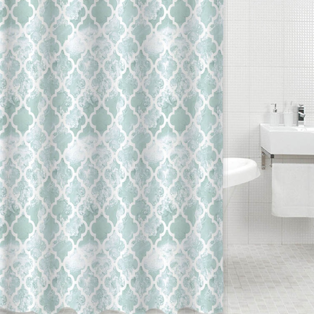 - Κουρτίνα πολυεστερική 90gsm, αδιάβροχη, με διακόσμηση σε πετρόλ αποχρώσεις