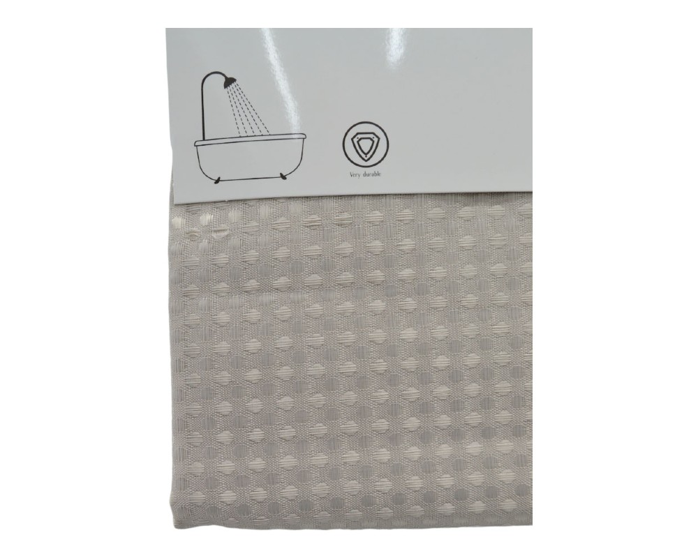 - Κουρτίνα πολυεστερική 115gsm, αδιάβροχη, σε μπεζ χρώμα με ζακάρ διακόσμηση
