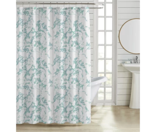 - Κουρτίνα πολυεστερική 90gsm, αδιάβροχη, με λευκή βάση και σχέδιο εφέ μαρμάρου σε τυρκουάζ αποχρώσεις