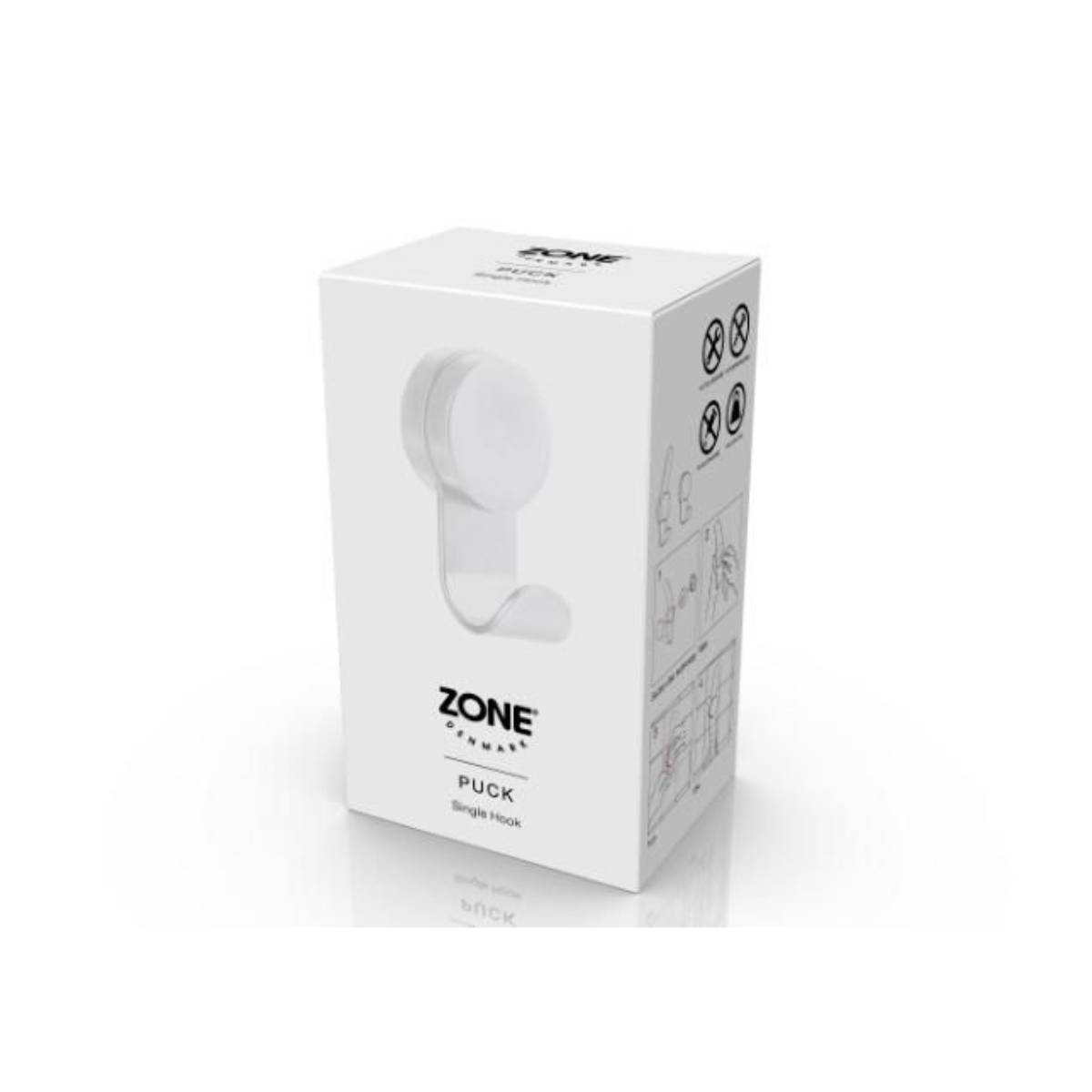 Ο μονός γάντζος Puck της Zone Denmark σε καθαρή White απόχρωση είναι η ιδανική λύση για να οργανώσετε το μπάνιο ή την κουζίνα σας χωρίς εργαλεία. Σχεδιασμένος από το δανέζικο ντουέτο VE2, συνδυάζει την σκανδιναβική λιτότητα με μια έξυπνη λειτουργικότητα.