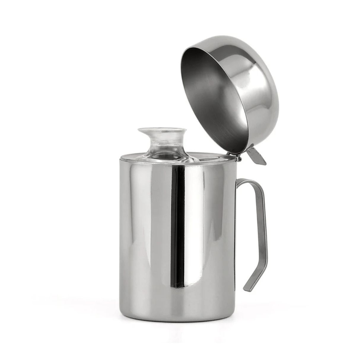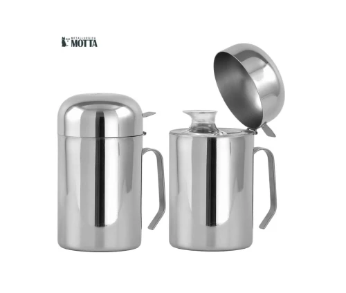 Η φιάλη λαδιού Motta 990 είναι μια πρακτική και κομψή επιλογή για την κουζίνα ή το τραπέζι σου. Κατασκευασμένη από ανοξείδωτο ατσάλι 18/10 AISI 304, προσφέρει αντοχή, υγιεινή και διαχρονικό design, ενώ το καπάκι προστατεύει το στόμιο από τη σκόνη και βοηθά στη σωστή διατήρηση του περιεχομένου.