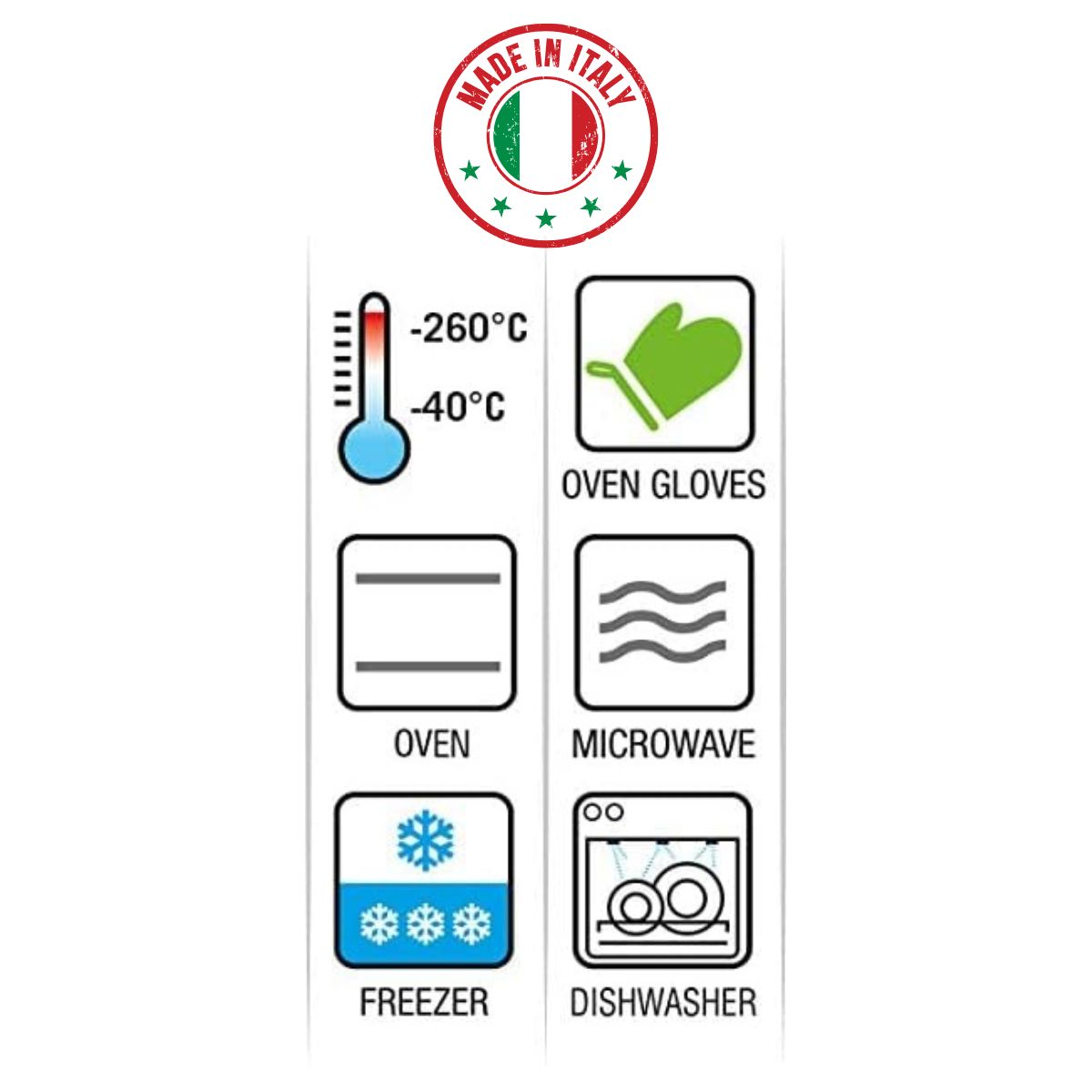 - Κατάλληλη για: Φούρνο, μικροκύματα, ψυγείο, κατάψυξη και πλυντήριο πιάτων.