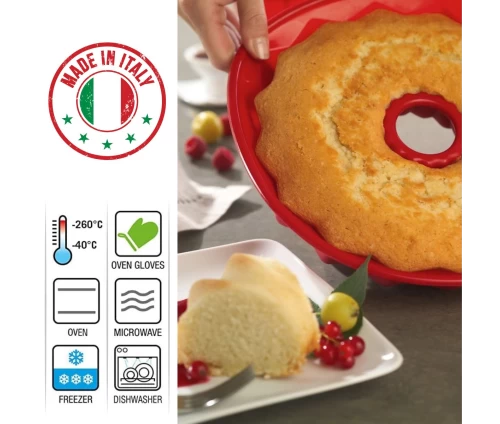 Δημιουργήστε τα πιο όμορφα και ομοιόμορφα ψημένα κέικ με τη φόρμα Ciambella (Savarin) της σειράς Juliette. Ο εργονομικός σχεδιασμός με τον εσωτερικό κώνο επιτρέπει στη θερμότητα να διαπερνά το κέντρο του μείγματος, εξασφαλίζοντας ότι το κέικ σας θα φουσκώσει τέλεια και θα ψηθεί σωστά μέχρι μέσα.