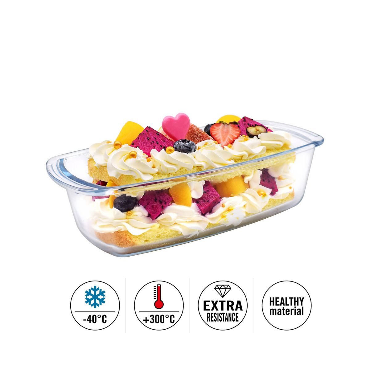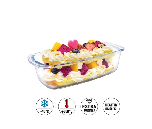 Η πυρίμαχη φόρμα plumcake Guardini YL-TYBR1800 από βοριοπυριτικό γυαλί είναι ιδανική για κέικ, plumcake, αλμυρές παρασκευές, μικρά gratin και καθημερινό ψήσιμο με ασφάλεια και άνεση. Με διαστάσεις 27x14 εκ. και χωρητικότητα 1,5 λίτρου, σου προσφέρει πρακτικό μέγεθος για πολλές χρήσεις στην κουζίνα.