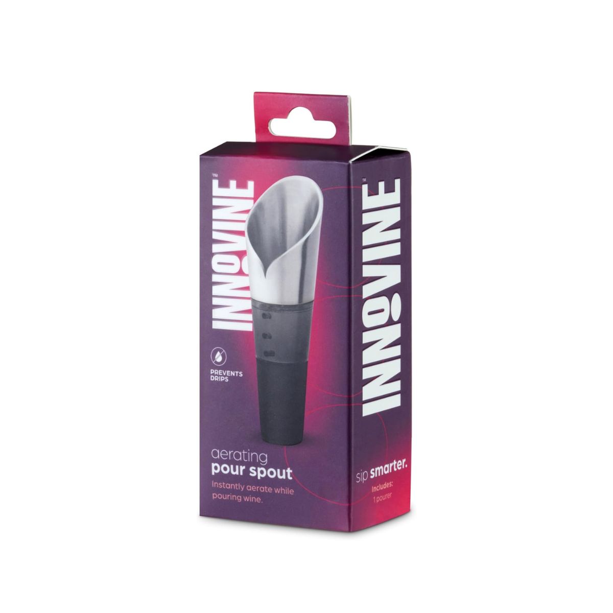Το στόμιο ροής και αερισμού Innovine (κωδ. 12042) είναι το απόλυτο εργαλείο για να αναδείξετε το μπουκέτο των αρωμάτων του κρασιού σας την ίδια στιγμή που το σερβίρετε. Ο συμπαγής και εργονομικός του σχεδιασμός κρύβει στο εσωτερικό του μια προηγμένη ελικοειδή τεχνολογία (air-blending helix), η οποία αναμειγνύει το κρασί με το οξυγόνο κατά τη ροή, προσφέροντας άμεσο αερισμό χωρίς την ανάγκη για κανάτα (decanter).